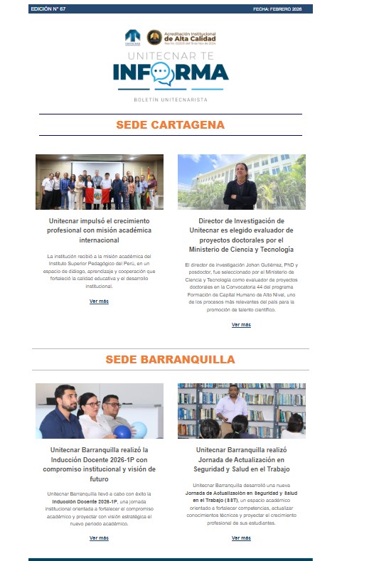 Conoce el boletín institucional que se genera mensualmente en UNITECNAR, como una herramienta de difusión y visibilización de las noticias que desde las diferentes áreas se producen.